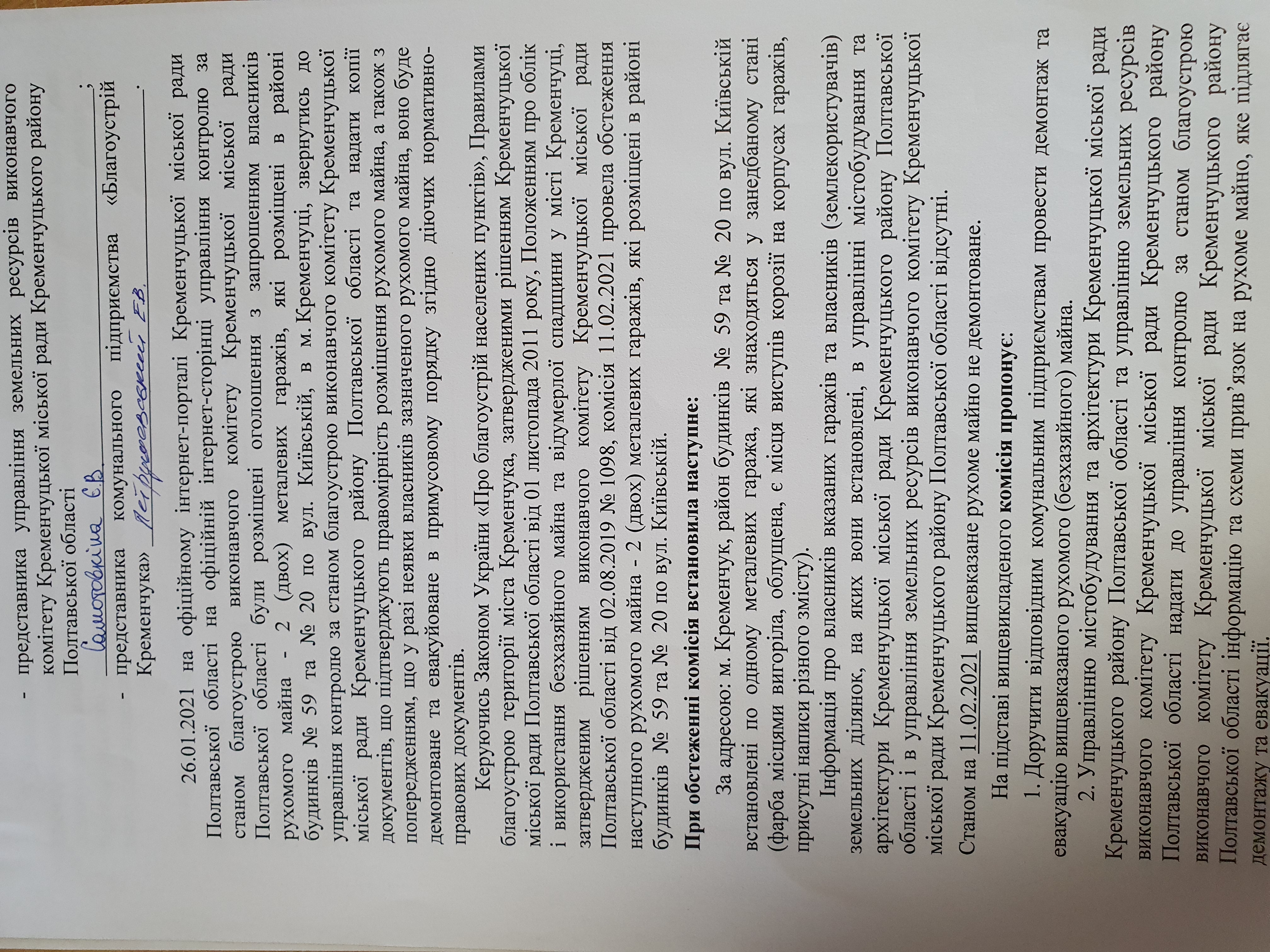 Про відмову у присвоєнні адреси гаражу з оглядовою ямою на території Кременчуцької міської ради Кременчуцького району Полтавської області